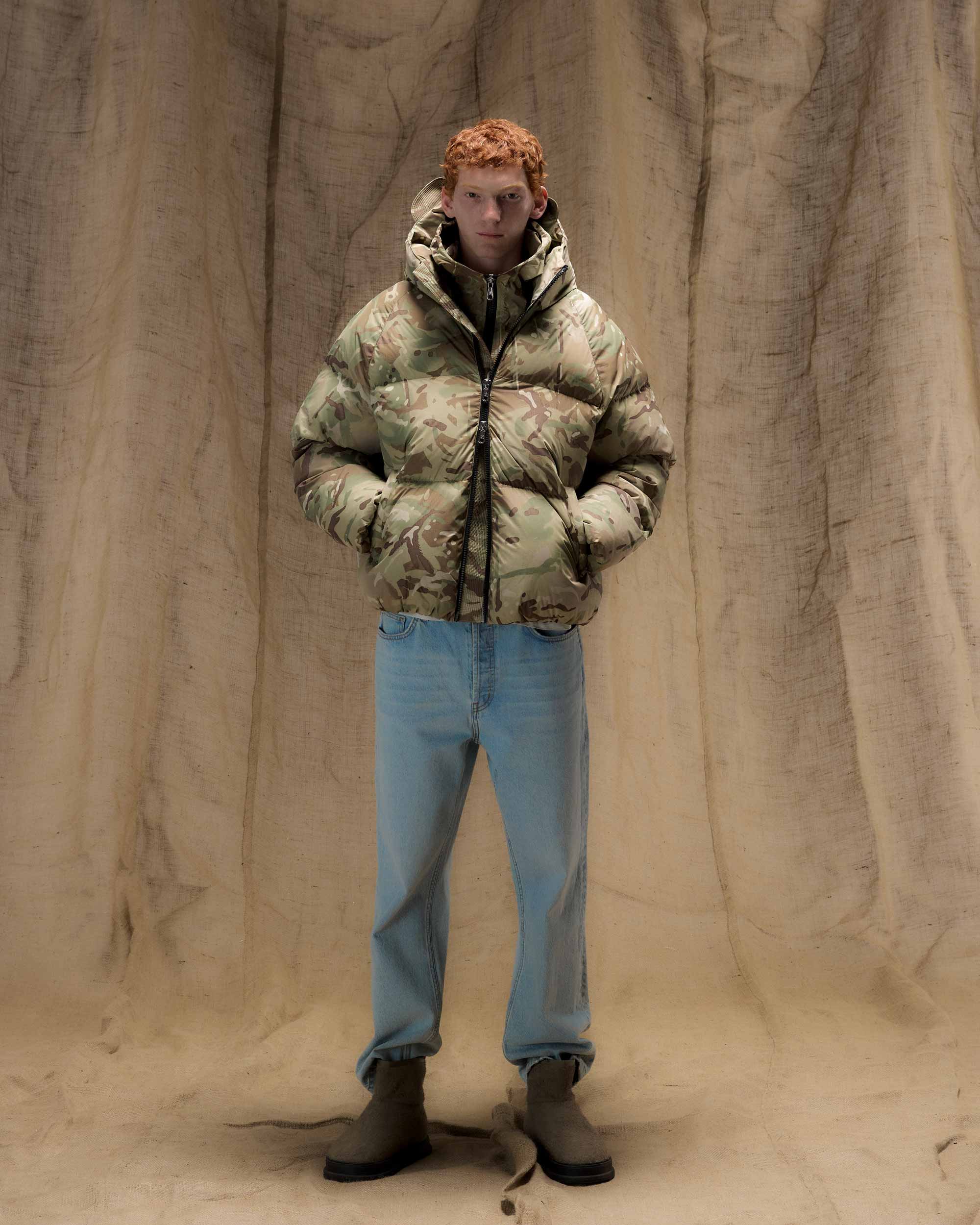 The camo hooded down jacket, our latest development in luxury insulated outerwear. Cut from an Italian multi-cam nylon developed by Majjochi, we have heavily filled the panels with down insulation to create incredible warmth in the body and hood. Details include CB branded hardware, meticulous quilting around the hood peak/ zip-guard and our signature Cole Buxton branded elasticated hidden cuff.