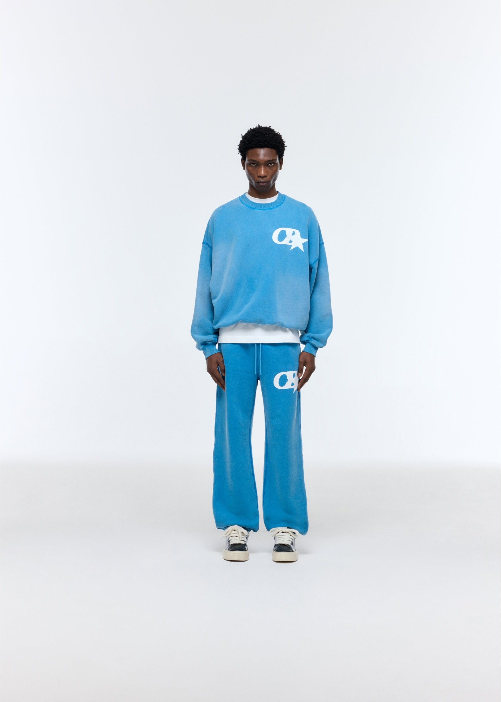 The distressed CB star sweatshirt, a brand new sweater for SS25. We’ve developed a brand new 500gsm half brushed American fleece for this that’s heavy in weight yet has a luxury drape. We have printed our CB star logo on this and then heavily washed it to achieve a perfectly faded and worn-in hand feel.