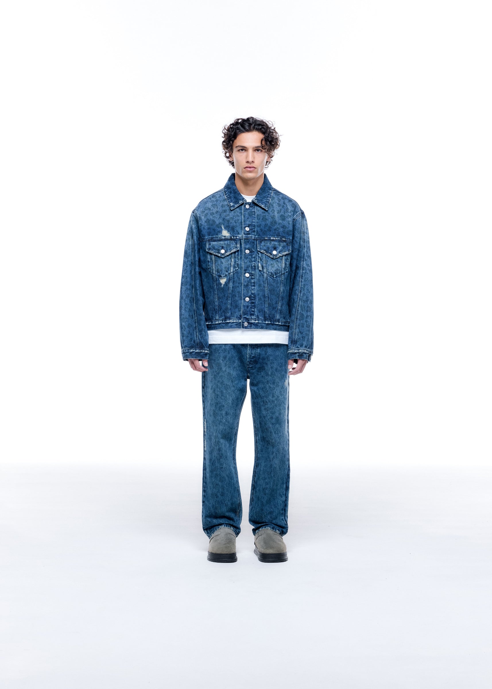 This leopard print jacket is the latest in our SS25 denim offering. Cut in a classic CB cropped boxy silhouette with type iii seam and pocket detailing. The production of this garment involves a tedious process of printing our custom CB leopard print onto raw denim before dyeing, hand distressing and heavily washing the jacket to achieve a perfectly worn and faded garment.