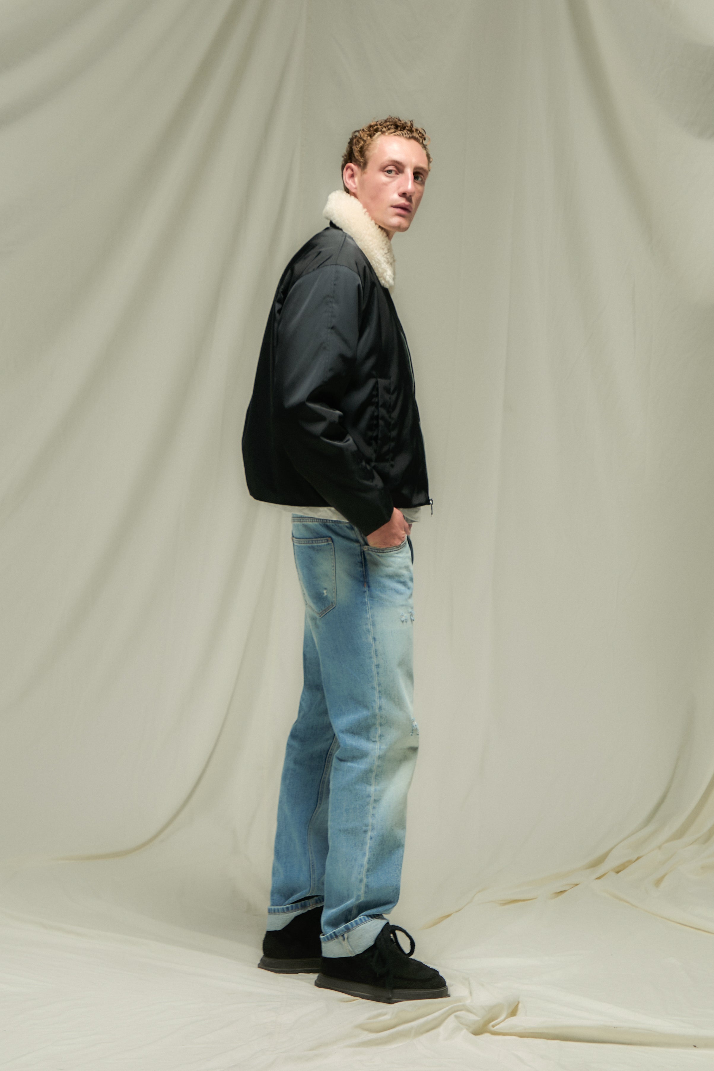 The shearling collar cargo jacket, our lightweight interpretation of the classic flight jacket. Cut in a boxy silhouette from an Italian nylon outer we have then insulated this with primaloft lining and finished it with a real sheepskin collar and a contrast green zip detail.