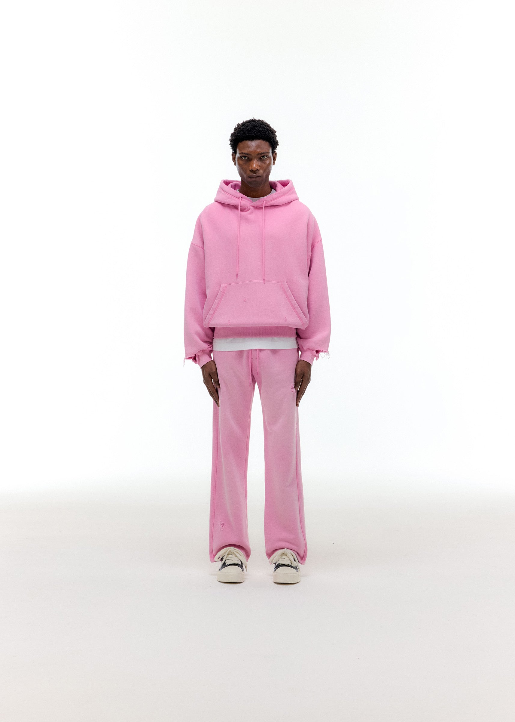 The sun fade hoodie, a brand new hoodie for SS25. We’ve developed a brand new 500gsm half brushed American fleece for this that’s heavy in weight yet has a luxury drape. We have heavily washed this garment and treated it to achieve an authentic vintage sun fade.
