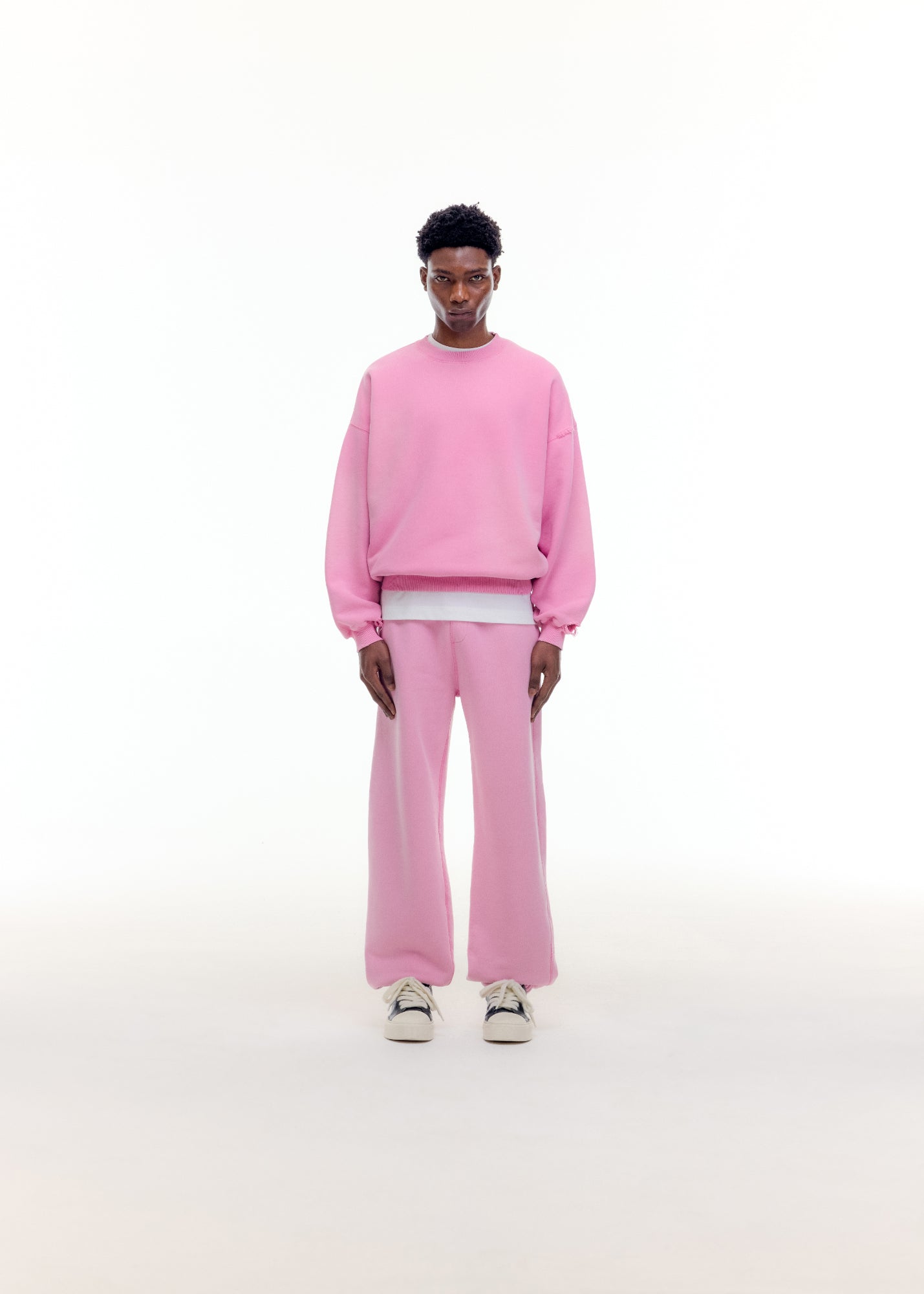 The sun fade sweater, a brand new sweatshirt for SS25. We’ve developed a brand new 500gsm half brushed American fleece for this that’s heavy in weight yet has a luxury drape. We have heavily washed this garment and treated it to achieve an authentic vintage sun fade.