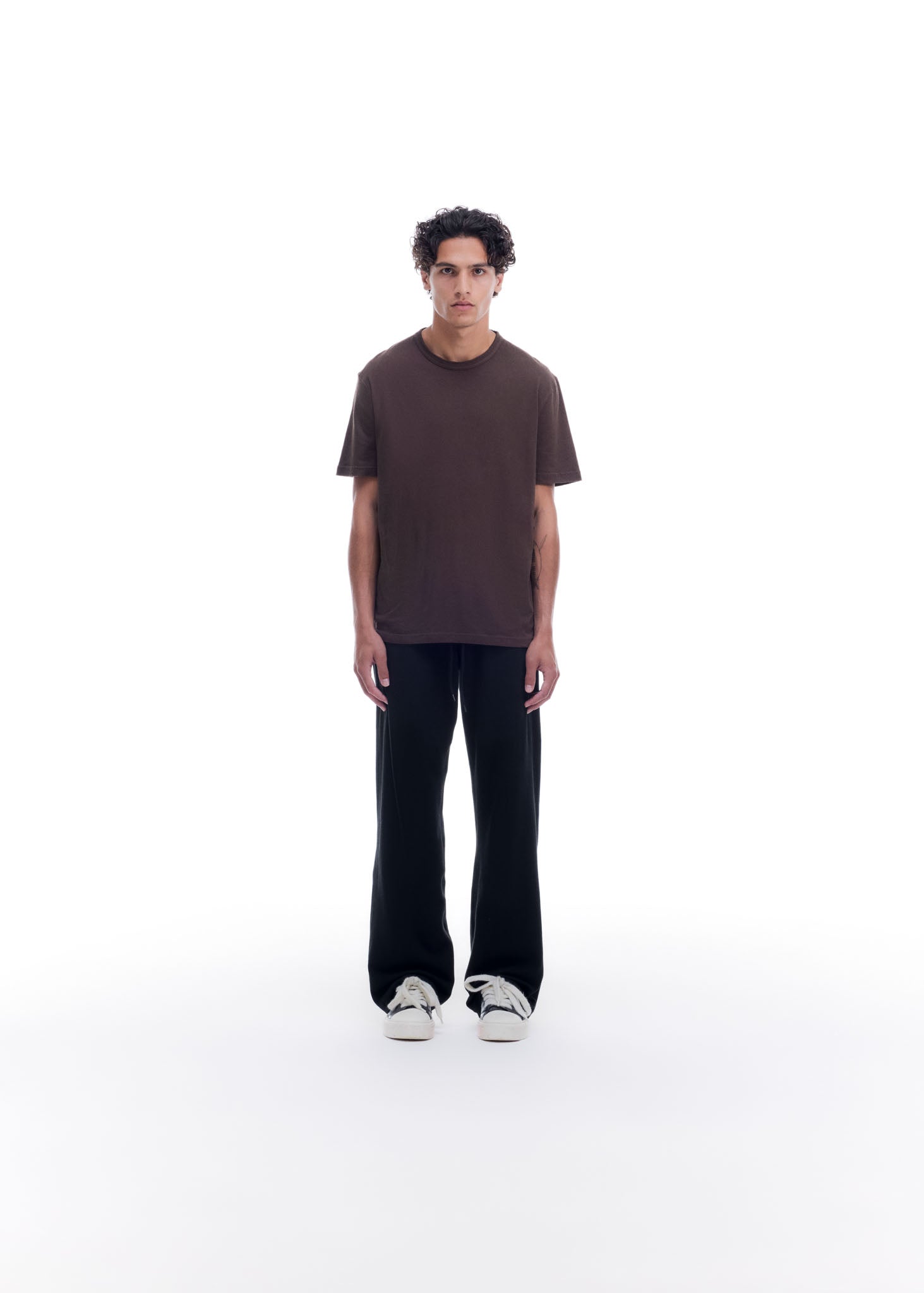 The Cole T-shirt is the newest offering in our t-shirt silhouettes. Cut in a more athletic shape from an open ended lightweight drapey cotton featuring a self fabric collar, coverstitched detailing throughout and a tonal classic embroidery on the back neck.