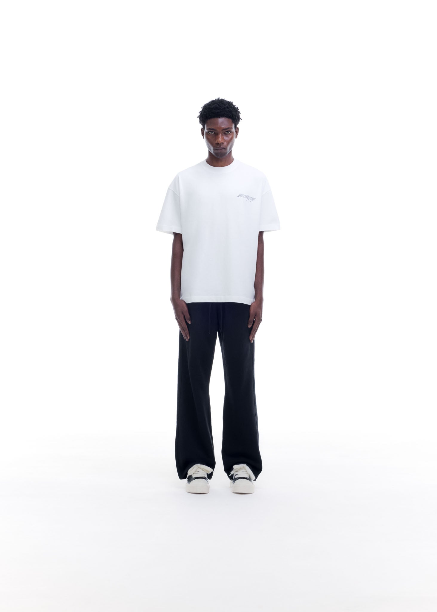 The Racer T-Shirt. Cut from our heavyweight 100% cotton in a oversized silhouette with our signature coverstitch neckline and single needle shoulder detail. Featuring our  resort racing logo printed across the back and on the left chest.